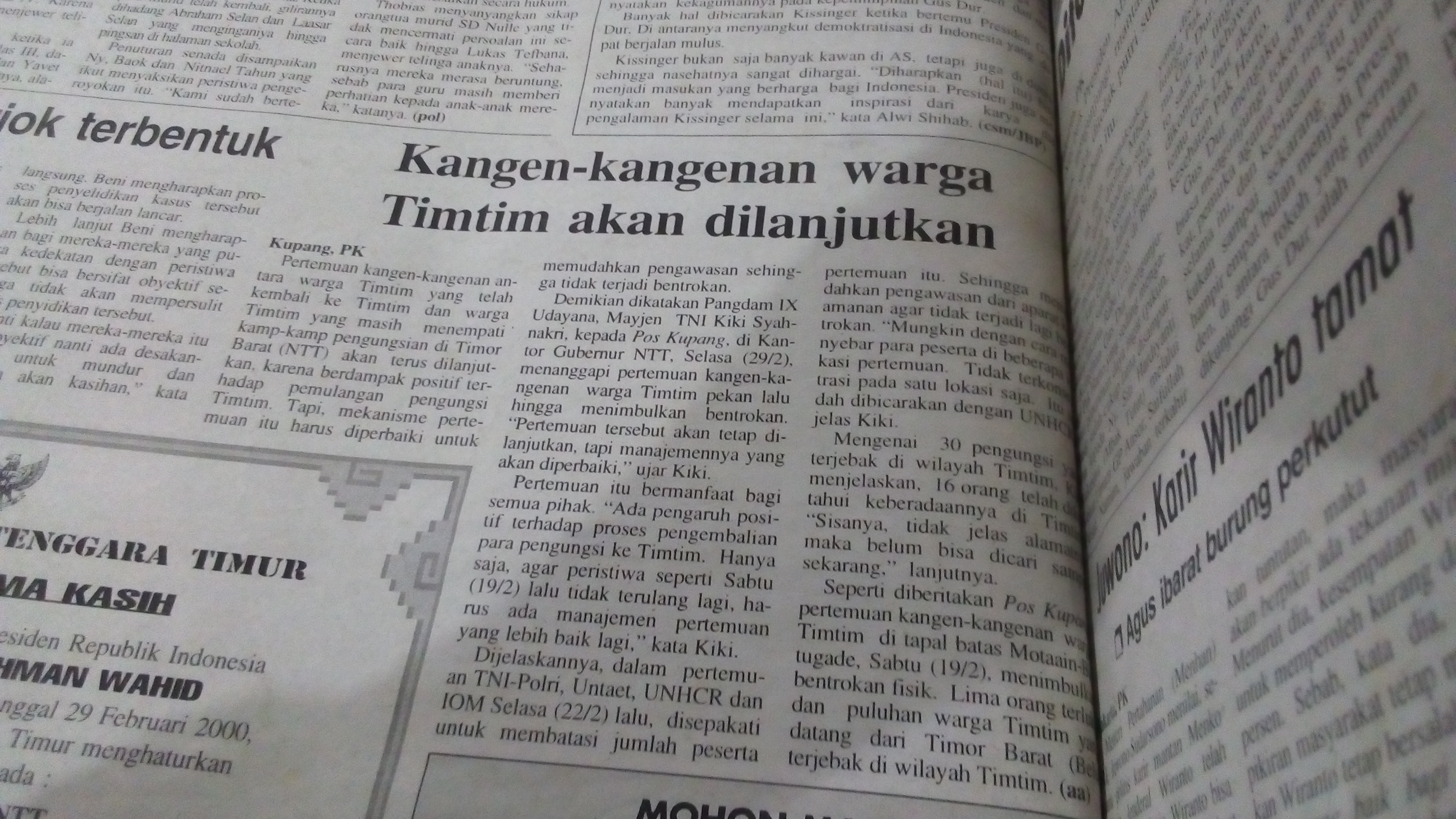 | Hasil | Dari serangkaian riset koran ini didapati bahwa banyak kasus kriminal yang terjadi antara pengungsi Timtim dan warga lokal, temoat mereka mengungsi. Kasus-kasus ini menunjukkan berbagai gesekan yang terjadi akibat dari Referendum Timor Timur yang memecah masyarakat menjadi dua yakni pro kemerdekaan dan pro integrasi dengan Indonesia. | |