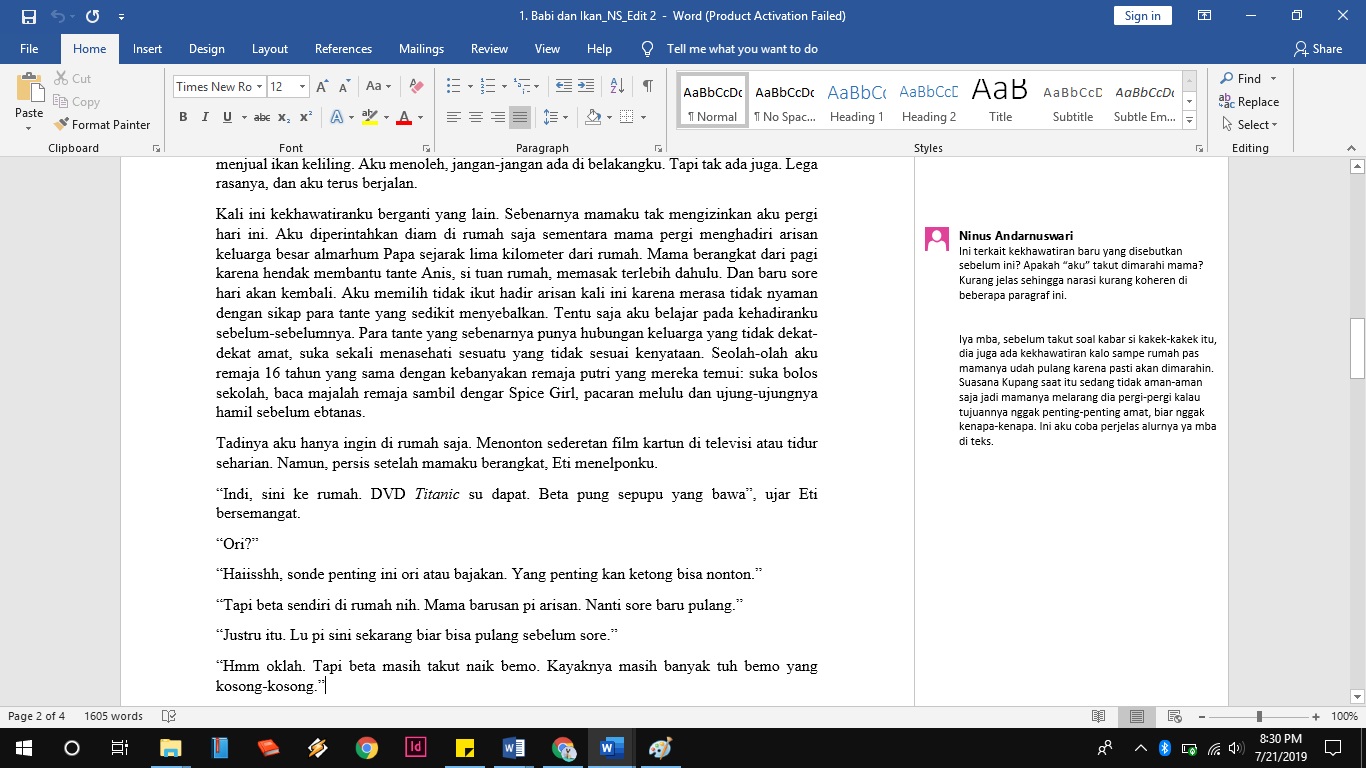 Mengevaluasi penulisan cerpen. Memastikan lagi kesesuaian data dan alur cerita. Memastikan logika kalimat dan diksi sesuai dengan kaidah yang berlaku. |